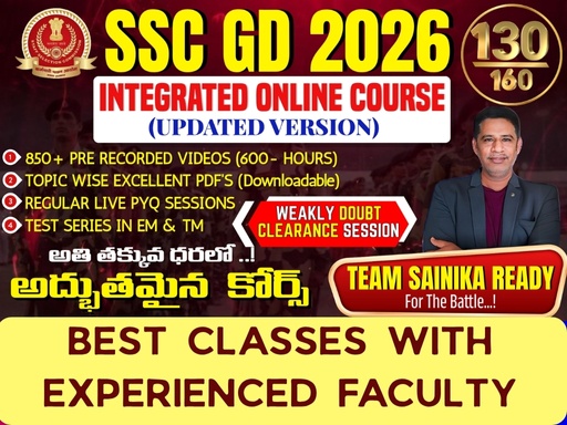 🔥 SSC GD 2026 (3.0) – Full Course (Updated Version) 1️⃣ Complete Updated Syllabus (2026 Pattern) – కొత్త సిలబస్, latest exam pattern & question level వరకు full coverage. 2️⃣ 70 Full-Length Mock Tests – Real exam feel తో practice చేసుకునే chance, detailed analysis తో video classes. 3️⃣ Topic-wise Video Classes – 2023, 2024, 2025 అన్ని models of Arithmetic & Reasoning topics with concept clarity. 4️⃣ Most Important PDFs – English Grammar, Vocabulary & GK subjects లో Top-Scoring material (English + Telugu). Arithmetic Short Tricks – Exam లో speed పెంచే shortcut methods explained in simple Telugu. 8️⃣ Reasoning Master Course – అన్ని chapters with real exam logic & smart approach. 9️⃣ English Booster Pack – 1000+ One Word Substitutions, Synonyms, Antonyms & Grammar rules with examples. 10️⃣ GK + Current Affairs Module – 2023 నుండి 2025 వరకు important static & current updates every month. 12️⃣ Bilingual Classes (English + Telugu) – ప్రతి concept easyగా అర్థమయ్యేలా రెండు భాషల్లో explanation. 13️⃣ Doubt Solving Sessions 15️⃣ Mission 120 Marks Plan – best guidance ⚡ Highlight Line: “One Course – All SSC GD Models (2023–2025) + 2026 Pattern + 70 Full Mocks + Video Classes + PDF Notes = Complete Success Package!”